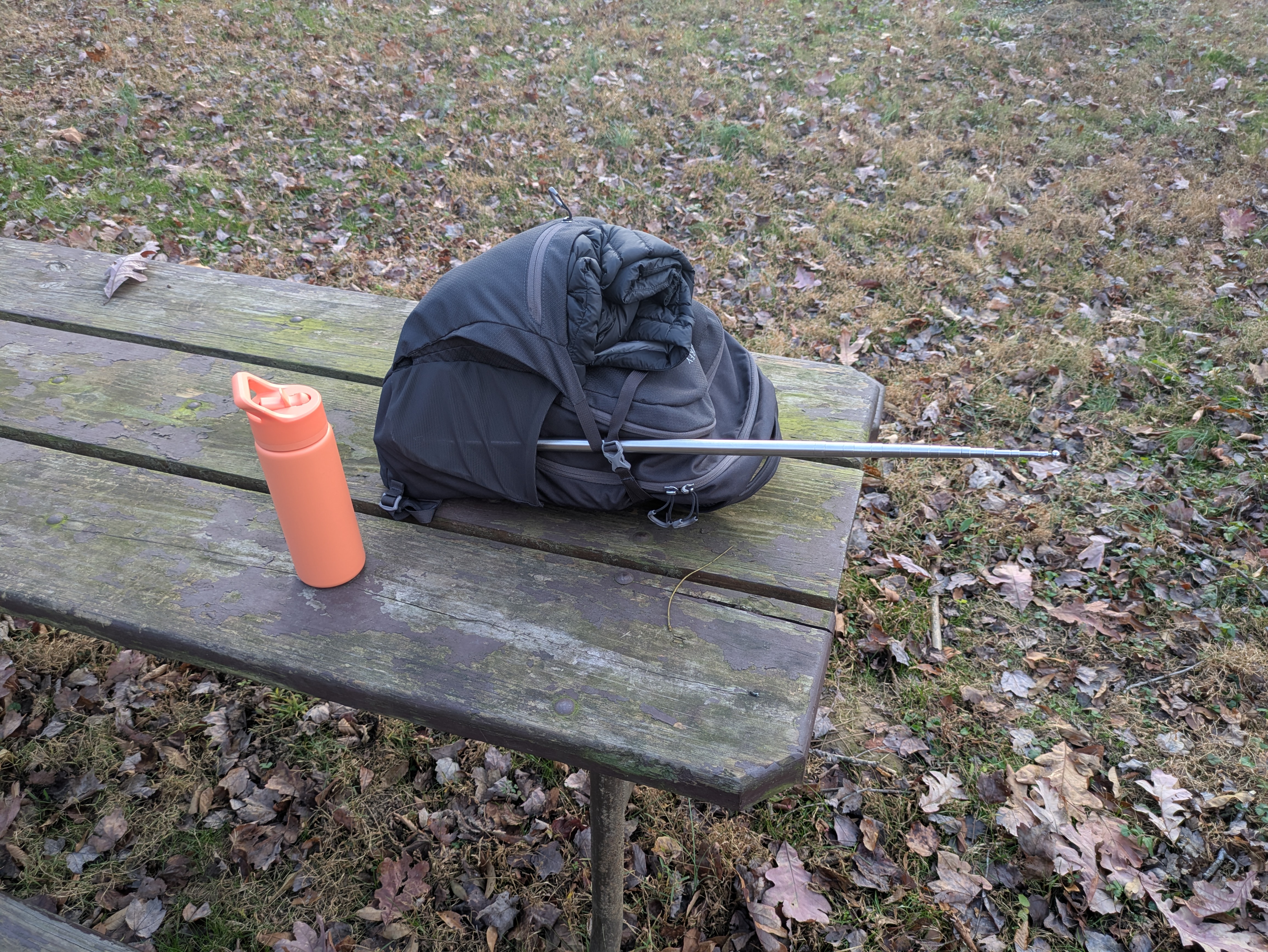 I love this setup and how minimal it is. I have it in an Osprey Daylite Plus pack. That pack is pretty minimal. It looks bulky because I brought a puffy jacket in case the temps dropped.