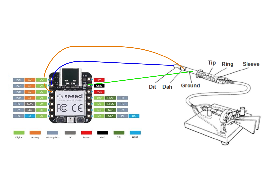 I thought that I could build an adapter pretty cheaply so I got a $10 Seeed Studio RP2040 board (Amazon link), and a $1.30 3.5mm TRS jack (Amazon link), and whipped together some Circuit Python Code.